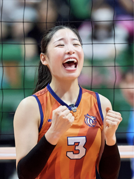 ‘필승 원더독스’의 든든한 성벽이자 대기만성형 재능꾼! 위기의 순간마다 강철 같은 블로킹과 흔들림 없는 철벽 수비로 제 역할을 완벽히 해내는 막내 미들 블로커입니다. 언제나 묵묵히 자기 몫을 다하며 팀에 힘을 보태는 모습이 앞으로 더욱 기대됩니다.